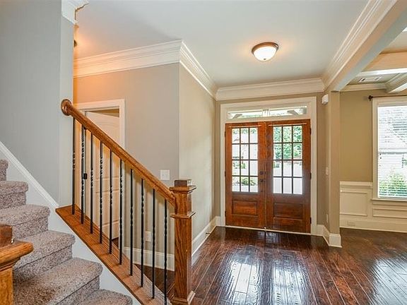- Interior: Foyer - Entrance, Double Vanity, Pulldown Attic Stairs, Separate Shower, Walk-in Closet, Ceilings - Trey, Hardwood Floors, Carpet