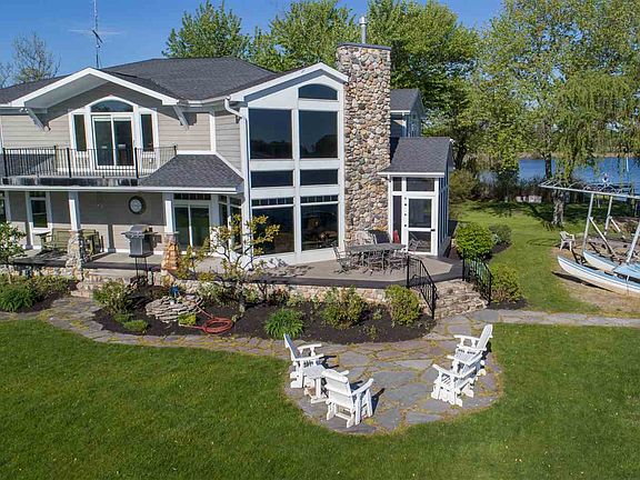 Stunning architecturally designed lakefront home located in a private setting. The home has a sand beach and panoramic views from the peninsula lot. The owners built the home with many, many custom details and high end materials while still keeping the feel of the home casual and welcoming! Coming over the bridge you will see the carriage style doors and wrap around porch which leads you up to the main door. A large entryway opens seamlessly into the open living space. A chef's dream kitchen sits at the center of the home with the great room off to one end and a large dinning space at the other end; both sharing waterfront views. The main level master suite also has its own lake views, hand scraped hickory floors, and an incredible master bath that you won't want to leave. Upstairs you will find a loft area overlooking the two story stone fireplaces and great room below, four additional well-appointed bedrooms are spacious in size and perfect for family and overnight guests. There is a bonus room over the garage which makes a perfect secondary living room. The home has the quality level and amenities you would expect to find plus a few more that make this home truly special. Ask for the full list of features. You could not even begin to duplicate the home today for the price!