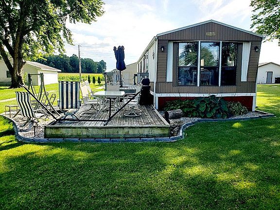 Back on the market. AVAILABLE again! Buyer could not close. Wheelchair accessible, with ramps and sidewalks all the way out to the dock. Remodeled, accessible bathroom. Metal roof installed 2015. Large, detached garage with metal roof also. All new metal skirting added 2018. Dog Watch underground fence around perimeter of property. Nice view of Barton Lake. Home will be sold FULLY furnished.