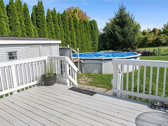 Located on a quiet cul-de-sac overlooking the historic Erie Canal Village of Jordan, the setting for this four-bedroom, four-bath classic colonial is as good as it gets. Thanks to 45 Arborvitae trees, a rear yard that backs up to fields and state land, and magnificent views in all directions, you will feel like you're living in the country with the bonus of Village conveniences nearby. All public utilities (sewer, water, gas, high-speed access) are available in the development, with new homes still being built. 40K+ in recent improvements include a new roof, furnace, central air conditioning, flooring, appliances, pool liner, and a remodeled bath. Additional features include an open floor plan, formal dining room, gas fireplace, sliders to rear yard, a massive kitchen with plenty of counters and cupboard space, first-floor laundry, recessed lights, partially finished basement, fans in all the bedrooms, fully fenced-in yard, Alexa controlled switches for lights and fans in three of the four bedrooms, Wi-Fi thermostat, and a freshly painted interior. Skaneateles, Syracuse, and Auburn are just 10-20 minutes away! 2024-11-07