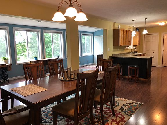 Nestled in the beautiful town of Alton, NH you'll find this contemporary home situated on 1.76 acres abutting conservation land. A level parcel just off the beaten path with great privacy yet conveniences to local amenities and a great commuter location. Enter your driveway to a two-car attached garage and enter through the mud room, a New England necessity. The open-eat-in kitchen flows to the open dining area with beautiful flooring complimented by a wall of windows to the back-yard retreat. Enjoy the conveniences of a first-floor master suite with walk-in closet and soaking tub along with a first-floor office and ½ bath. Cozy on up to the gas fireplace in the living room or the wood stove in the lower level. Upstairs hosts two bedrooms and a bonus play room located over the garage. Sit back and relax on your farmers porch overlooking your landscape or retreat inside on a hot day in the central AC. Ready for your enjoyment!