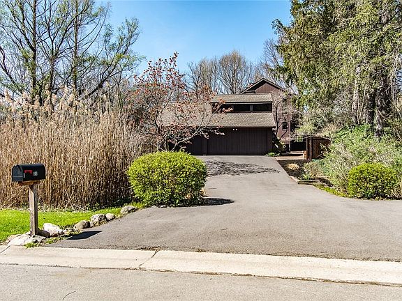 Finally something unique and different! Ideal location offering the trifecta of Pittsford schools, Town of Perinton, and Fairport Electric. Gorgeous contemporary style home loaded with natural light. Tucked away on a secluded park like lot with tons of privacy! Incredible style & designed by a female Architect in the 1970's, this home is truly special. With multiple tier decks & seamless flow between the lower level living room and outdoor spaces it's the entertainers dream. Offering a wonderful combination of indoor/outdoor living. Quality built home with cedar exterior, a 5 year old roof, new lower level deck & a new driveway. Beautiful paver walkway sets the tone from the moment you walk up. Shaker style kitchen cabinets, granite counters & breakfast bar. The vaulted ceilings throughout provide an open airy feel with lots of room. Spacious 2nd floor living room w/ sliders to balconies overlooking the yard, and a cozy wood stove. Huge lower level living room with double sided fireplace and massive sliding door leading to the deck. Located near expressways, thruway, shopping, conservation area, and Garnsey Arboretum. Delayed showings Thursday 5.12.22. Open Sunday from 2-4 pm!