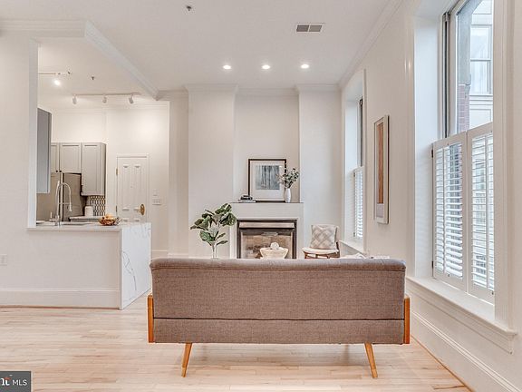 Logan Circle Best Address ; Parking ; Private Entrance ; High Ceilings ; Natural Light ; Renovated ; Low Condo Fee ; 98 Walk Score ; Pet Friendly ; Soak in all the natural light of this thoughtfully updated 2BR / 2BA condo situated within a spectacularly converted rowhome at a Washington DC coveted address of Logan Circle. Enter through your own private entrance and enjoy modern renovations that give a fresh feel to the historic windows, dramatic 11ft ceilings, and gorgeous gas fireplace alongside newly refinished light hardwood floors, new Washer/Dryer, and more. The updated kitchen is an entertainer's dream, featuring new stainless steel appliances, gas cooking, marble mosaic backsplash, and dramatic quartz waterfall countertops. The open layout allows for you to relax by the fire and cook a great meal all while looking out on the greenery of Logan Circle Park. As if it couldn't get any better, your reserved parking space in the back gives you peace of mind that you will always have parking in this vibrant neighborhood. The sun-drenched bedrooms each grant you the elegant touch of Juliet balconies and feature well sized walk-in closets including one with a floor to ceiling ELFA storage system already in place. Both bedrooms are generous and equally sized. The primary en-suite bath feels like a spa with a stunning walk-in glass shower, brand new luxury TOTO toilet, rain shower head, herringbone floors, and tasteful nickel finishes. The second bathroom features beautiful black and white geometric floors, black finishes, as well as a brand new luxury TOTO toilet. Enjoy relaxing on the charming steps of the front patio or saunter into Logan Circle park itself. The home is set back in beautiful landscaping which gives a private feel right in the heart of DC. Pet friendly boutique building living and one block from the vibrant restaurants and shops on 14th street, a short walk to Whole Foods and Giant, and easy access to several forms of public transportation.