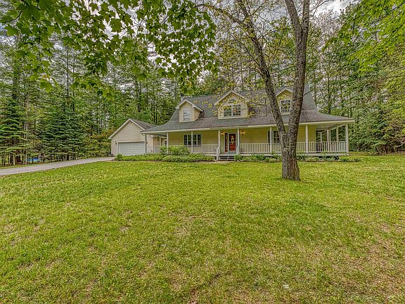 Stunning mountain home in the heart of NH. Absolute perfect location for your primary or secondary property! You are welcomed by a large mudroom space with loads of storage space. The main level features an exceptional open floor plan living space with 20’ ceilings and a beautiful wood-burning fireplace. The seamless flow from the living, kitchen, and dining areas makes this home perfect for entertaining friends and family. Two guest rooms with a full bath on the first level along with laundry. The second floor features plenty of natural light and a spectacular primary bedroom suite with its own private balcony. The basement level consists of additional living space and a custom bar which are perfect for game or movie nights with friends. A home gym and utility area round out the lower level. Attached two car garage features storage above and a custom 240V charger for your EV vehicle. The lush backyard is a great place for a campfire and all the sports games you can come up with. This large & luxurious home is minutes to 4 season activity and is an absolute must see.