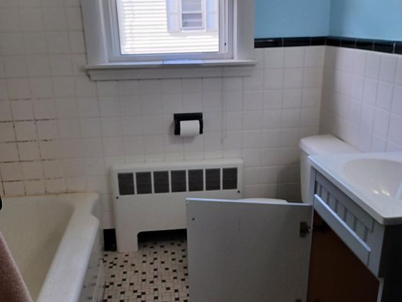 NO PETS Lovely 2 br 1st floor apt. Refinished Hardwood floors . Freshly painted. Eat in Kitchen, Dining Room , livingroom and 2 equal sized bedrooms. Nice big back porch and yard. 2 car off Street parking. W&D dryer hook up in basement along with storage. Utilities not included. Must have excellent credit and references. Avail Now