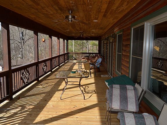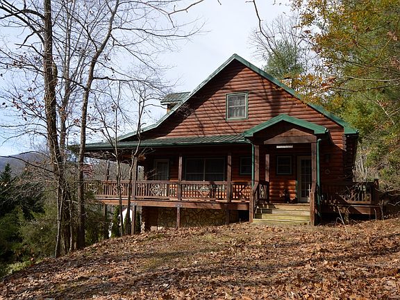 PRICE REDUCED $10,000.00. Incredibly beautiful log home! Waterfall and creek on property with spectacular views!! 3 levels of living area. It has main level living, 2 bedrooms(septic) with en-suite baths. 2 bonus loft rooms upstairs - currently bedrooms, with connecting walkway open viewing to downstairs. A stone/rock fireplace, tongue & groove walls and ceilings. Custom hickory cabinetry with granite countertops. Lower level has a bathroom and 2 bonus rooms which are now a bedroom and den/gym area. Wired surround sound & satellite security system. Has 3 zone HVAC, which has built in humidifier and dehumidifier, 80 gal water heater. All electrical wiring and box in for a generator. Enormous space for entertaining inside and out, with french doors to a 55' porch/deck. Lower level deck/pad can be for small RV parking, which also has a 9 x 11 shed. There is a walkway/deck that runs along part of creek. Mountain living at its best with a remarkable log home, a creek and a waterfall! Partially furnished. DON'T MISS THIS ONE!