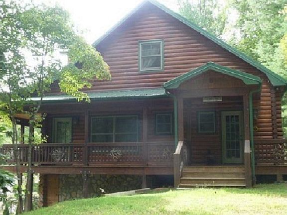 PRICE REDUCED $10,000.00. Incredibly beautiful log home! Waterfall and creek on property as well as additional building sites with the same spectacular views!! 3 levels of living area. It has main level living, 2 bedrooms(septic) with en-suite baths. 2 bonus loft rooms upstairs - currently bedrooms, with connecting walkway open viewing to downstairs. A stone/rock fireplace, tongue & groove walls and ceilings. Custom hickory cabinetry with granite countertops. Lower level has a bathroom and 2 bonus rooms which are now a bedroom and den/gym area. Wired surround sound & satellite security system. Has 3 zone HVAC, which has built in humidifier and dehumidifier, 80 gal water heater. All electrical wiring and box in for a generator. Enormous space for entertaining inside and out, with french doors to a 55' porch/deck. Lower level deck/pad can be for small RV parking, which also has a 9 x 11 shed. There is a walkway/deck that runs along part of creek, and there is 4-wheel drive access to upper acreage and building sites. Mountain living at its best with a remarkable log home, a creek and a waterfall! Partially furnished. DON'T MISS THIS ONE!