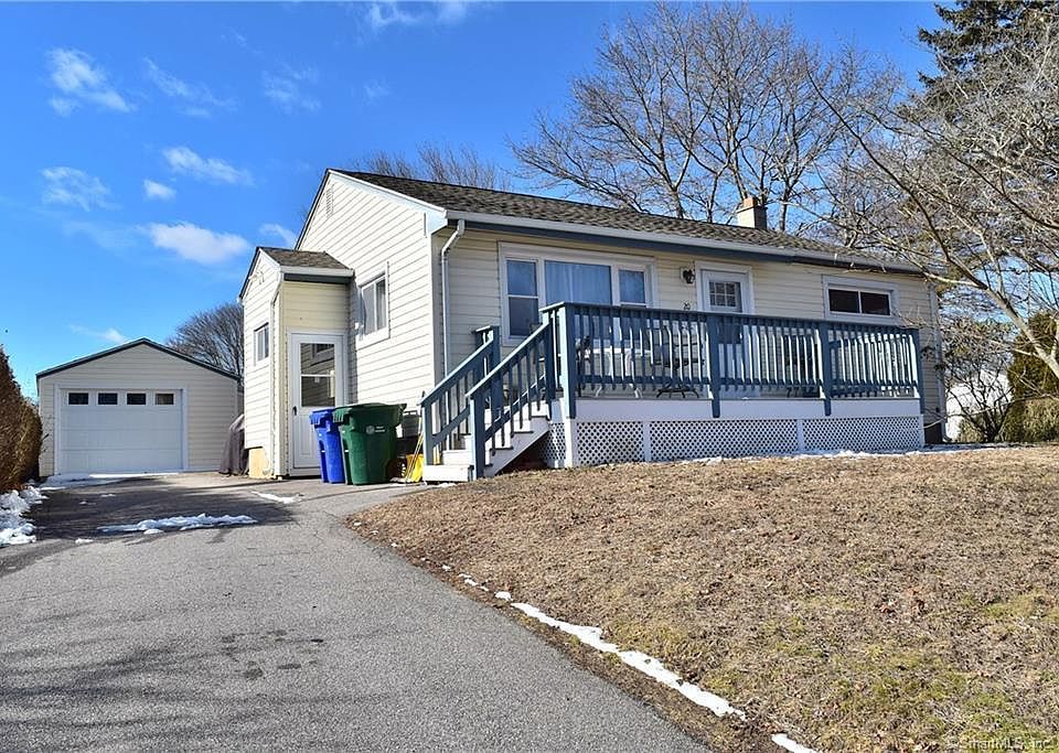 Set on a corner lot this Ranch style home is in move-in condition. The updated kitchen has all new stainless steel appliances, tile floor, and a breakfast bar that sits between the kitchen and living room, creating an open flow prefect for entertaining. The living room has hardwood floors and a picture window that let in plenty of natural sunlight. Two bedrooms with hardwood floors and a full bath complete the first floor. The lower level has 3 additional finished rooms with ceiling fans and a full bath with laundry. The lower level is up to fire-code with an exit Bilco window as well as Bilco door. A one car garage with an attached permanent shed, two driveways, a level back yard, a large front deck, and a mud room complete this home.