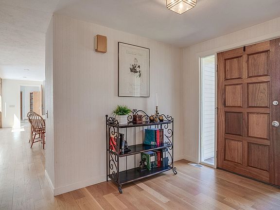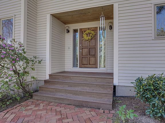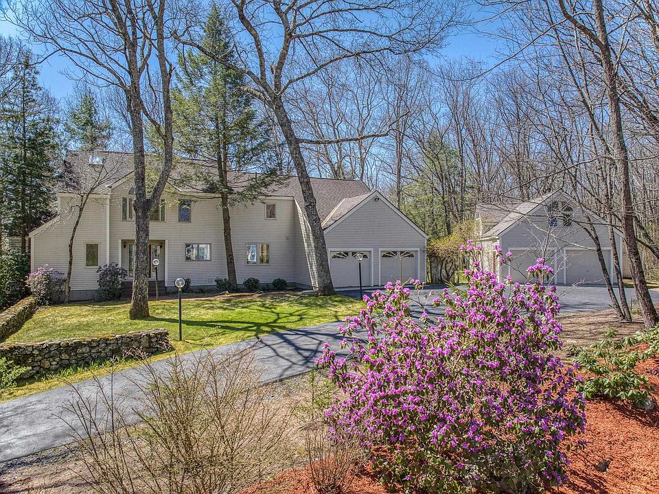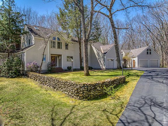 One-of-a-kind ACORN Deck post and beam home stands as a testament to craftsmanship and thoughtful design with signature open floorplan, energy efficiency and south facing wall of windows providing passive solar benefits. Located at the end-of-the cul-de-sac on 1.51 landscaped acres with specimen trees and stone walls, offering a private retreat. The front entry welcomes guests with signature Acorn features: a vaulted-ceiling great room where a two-story fieldstone fireplace commands attention, exuding warmth and charm. Adjacent to this space is the potential in-law with an office, 3/4 bathroom and hot tub room (great future living room). The great room opens to the dining room, characterized by an atrium bathing the space in natural light. Step onto the wraparound deck with views of the private back yard. The kitchen is flooded with light and has a cozy wood stove. Upstairs, the primary bedroom has a vaulted ceiling and exposed beams, a mega-huge walk-in closet and updated bath with radiant heated floor. The other three bedrooms share a full cheery "mandarin" guest bath. A light-filled loft overlooks the great room. The laundry is conveniently located on the 2nd floor. The lower level is finished with a rec room and office. BONUS: A separate barn (bring your horses) with loft level or STABLE your extra vehicles! Top Bedford schools. Just 15 mins. from Manchester airport, and appx. 1 hr. to New Hampshire's mountains, lakes, seacoast & an easy drive to Boston. VISit today!