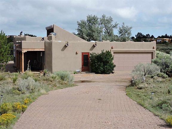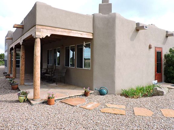The best of both worlds! Lovely sunny passive solar home with natural gas forced air heating and cooling ideal for our Santa Fe weather. A split bedroom design with tile floors and beam ceilings throughout. Traditional Kiva fireplaces in master, guest/office bedrooms and living room. The home was extensively updated in spring 2017. A beautiful new master bath, additional master bedroom windows, new kitchen granite counter tops with double sinks, disposal and faucet. A new studio was added in 2017 with garden and mountain views with gorgeous new flag stoned portal, flagstone walking way and back portal. The entire house was newly stuccoed; exterior lighting added and roof maintained in 2017. Bordering a large greenbelt with extensive mountain views this home is wrapped with xeriscaped landscaping of perennials and native plantings to enjoy year round. On 2 acres yet close to all of Eldorado and local community amenities and only minutes into Santa Fe. This home is a Must See!