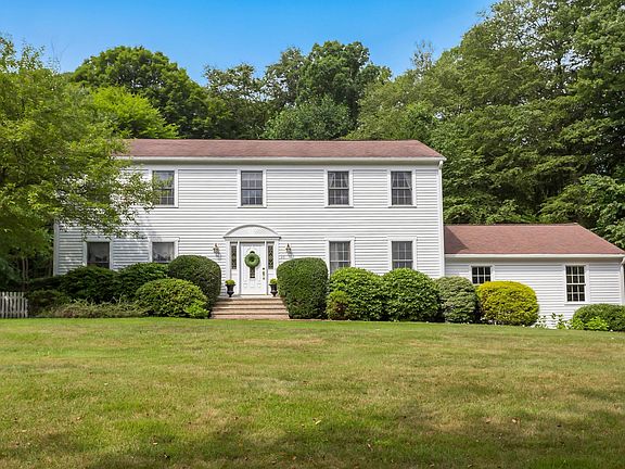 Experience the natural purity of Easton in this quintessential Connecticut retreat in Fairfield County. The classic Colonial is elegantly sited on a hilltop with a sweeping front lawn across from land trust and river. Its commutable location is less than 2 miles from the Merritt Parkway and short drive to train. Step out the front door to fly fish on the serene Mill River or stroll on the cul de sac while listening to the gentle sounds of the water. Stretch the summer season with the heated pool or gather around a bonfire in the backyard after a hike in the woods. Have the best of both worlds with option to pick up groceries from many local farms or be at Target in 5 min. The main floor is centered around the spacious and updated kitchen. The bright family room has skylights, wood burning fireplace, and French doors with deck access. The dining room overlooks the pool and opens to the expansive deck. The living room is centered around a piano and across the foyer from private den/home office. The upstairs provides 3 bedrooms, bonus room and master en suite. The lower level of this home has recently been finished to serve as a recreation room, work space, kitchenette, full bath & wine cellar. The layout is versatile for entertaining and the home has plenty of room for guests as can sleep 16. City Water/Nat Gas Heat/ Central Air. No smoking.