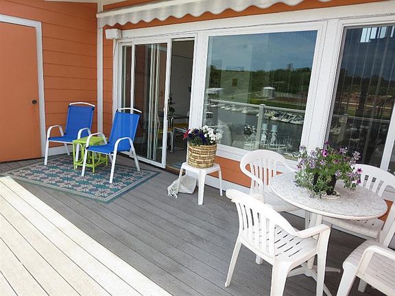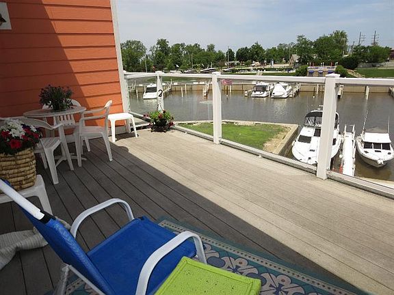 Enjoy sunsets, views of Trail Creek and Lake Michigan from this 2 bedroom, 2 bath condo in Marina Park. Main level master bedroom has dressing area with large closet off bathroom. Loft features second bedroom with sitting area (potential third bedroom) and 3/4 bath. New stove and pre-finished, wood laminate floor in kitchen. Also included are 55' boat slip, private laundry room with storage and covered parking.