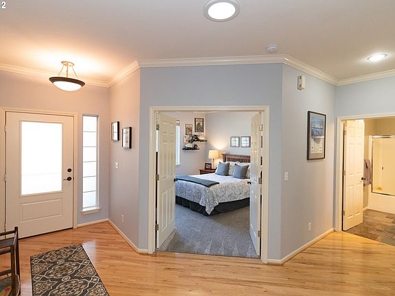Pride of ownership shows in this 2 bed/2 ba custom home in gated community of Mariners Village. Beautifully landscaped with irrigation on timers in front yard and drip system and timers in fenced backyard. New Stainless appliances, hardware & quartz countertops. Slate, hardwood & new carpet flooring. Vaulted ceiling, crown molding, LED lights throughout, garden shed, oversized dbl garage. RV parking space in gated storage lot. Fiber cement siding. Prewired for back up generator.
