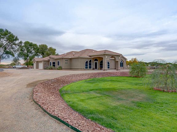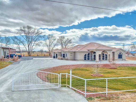 Classy Country living at its finest! Custom 1-story home nestled in a gorgeous rural setting on 2.18 acres 1 mile from the river w/plenty of that coveted elbow room. Elegant features: gated entry, fancy Porte Cochere, spacious floorplan, open kitchen w/granite countertops bar seating, breakfast & informal dining areas, awesome family room at the heart of the home w/75-inch mounted TV & Bose surround sound, movie night! No small rooms, 3 big bdrms, 3 full baths & a luxurious Owner's suite. Extraordinary amenities: Private domestic & irrigation wells, both w/new pumps, new front lawns, LED landscape lighting AND a 4000 sqft garage/RV/DREAM shop w/separate 200-amp service, 18 ft overhang, roll up doors, pellet stove & room for 30 mid-sized cars, toys, you name it! It could be your Dream Home!