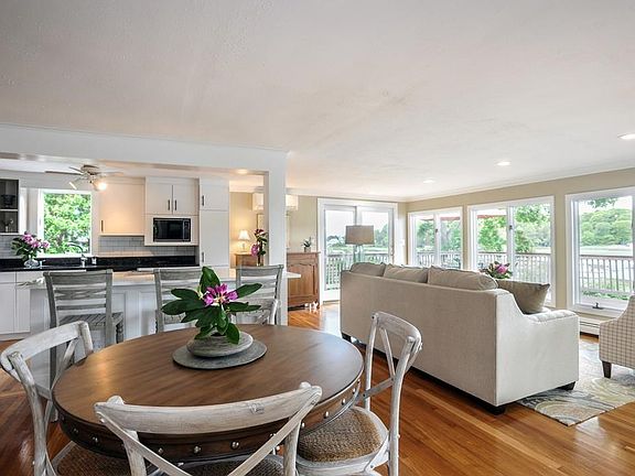 Don't miss this opportunity to own a little slice of heaven! Enjoy the ever changing views of the Jones River and Duxbury Bay from the walls of windows on the back of the house. Have your coffee in the morning on the deck and then walk down the ramp to your private dock for a spin in the kayak or boat out to Duxbury Bay. Entertain outdoors on the expansive back deck, or enjoy a late day glass of wine on the second floor balcony. This home offers a relaxed lifestyle with its open floor plan, light-filled rooms, and private dock. The heart of the home is the sunny kitchen, fire placed dining area, and living room which is completely open and spacious. On this floor you will also find a guest bedroom/office and a full bathroom. Upstairs there is a master bedroom, full bathroom, large laundry with cedar closet and large family room with sliders to the upper balcony. All of this is set on a beautifully landscaped level lot.