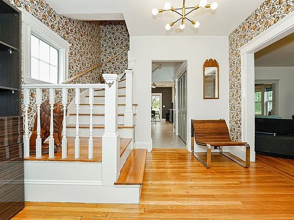 Offers should be submitted by 6pm 5/19. Spectacular space in this 4/5 Bedroom Colonial blends modern convenience with 1920's details; gracious foyer, 9 ft. ceilings and hardwoods, stained moldings and custom built-ins are augmented by a young roof, boiler, AC, modern kitchen and updated baths. Wide, cased openings between the foyer, living and dining rooms with french doors separating a 5th bedroom/office. The spacious kitchen was updated with custom cabinetry, quartz counters + gas range and opens to amazing deck. Upstairs, four large bedrooms with sizable closets, renovated full bath nd three season sun room allow for easy living. Enjoy the tranquility of an entry courtyard setting the home off from the street, private back deck and tree-lined yard. Quick access to Adams Park (less than 1mi) and other bustling Rozzie eateries, shops and transportation. Dry basement with walk-out access to yard, 2 car tandem park, first floor laundry.