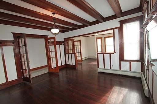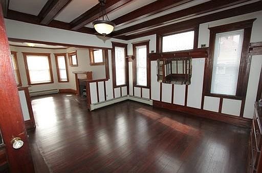 This updated 3 bedroom condo has unending charm. It is on the second floor of a large three family, and is very spacious and has a great kitchen, a fireplace in the living room, stylish French doors, a large dining room with a built in leaded glass hutch, exposed wood beams, and a sunroom on each end of the unit. Beautiful hardwood floors throughout and gorgeous exposed beams. It has laundry hookups in the basement and use of the yard. 10 minute drive to Boston and 10 minute walk to the Train walking distance to the Orange Line T at Wellington and great Restaurants and stores. Easy to show. Available Now. Freshly Painted and well maintained. Comes with 2 Garage Parking Spots.