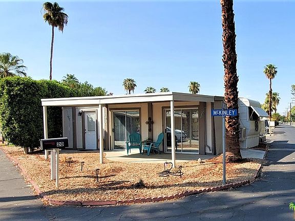 Come and enjoy the good life! Located one block from Palm Springs border, this unique 800 square foot mobile home hugs the corner of Lincoln and McKinley in the heart of a welcoming 55+ mobile home park, right off the Hwy 111 in Cathedral City.