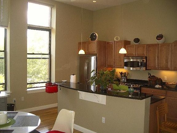 Loft style 2 bedroom open plan with 2 full bathrooms. Row of huge windows overlooking park ,High ceilings, central air, hardwood floors, fireplace, extra storage, ultra modern kitchen and bathrooms. Garage parking. Walk to Redline, Central Square, MIT and Harvard. Tenant responsible for utilities. First months rent, one month security deposit and one month brokers fee due at lease signing. Pets negotiable. 1 Garage parking space is included in $4500 rent.