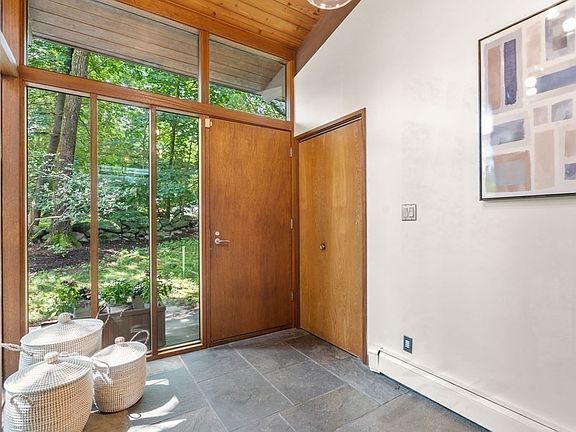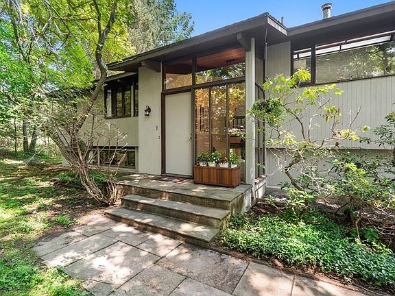 Situated on 1.92 natural and pastural acres on one of Westwood’s desirable cul-de-sacs, this contemporary Deck House offers beautiful post and beam woodwork, vaulted ceilings, 4 bedrooms, 3.5 bath rooms, 3 oversized garage spaces, and natural views from every window. Bright and airy, the floor plan flows nicely through the dining and living room, kitchen with breakfast nook, great room, office, walk-out recreation room, and a sunroom to enjoy through all seasons. The lower-level bedroom with kitchenette and separate entry is perfect for family or hosting guests. Features include refinished wood floors, updated water tank and Buderas heater, central AC, split-system heating and cooling, updated stainless appliances, PVC deck, interior paint, and two wood-burning stoves incorporated with the original home design. Former site of Westwood’s historic Fisher School. A rare opportunity to own this lovely Deck home with proximity to schools, entertainment, shopping and commuting