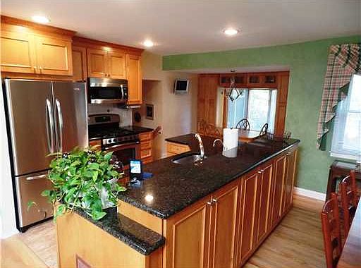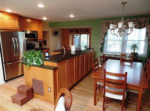 Split Level, Development Home,Contemporary - Ea Bruns, NJ Open concept floor plan with newer kitch with stless applc and granite counters with maple cabinets opens to d/r and l/rwith skylites. F/r with fplc opens to 3 season room with skylights facing a pretty yd. Updated p/r, exposed wood flrs,sided with newer driveway and attract ldscp and newer door. This is a beautiful home!