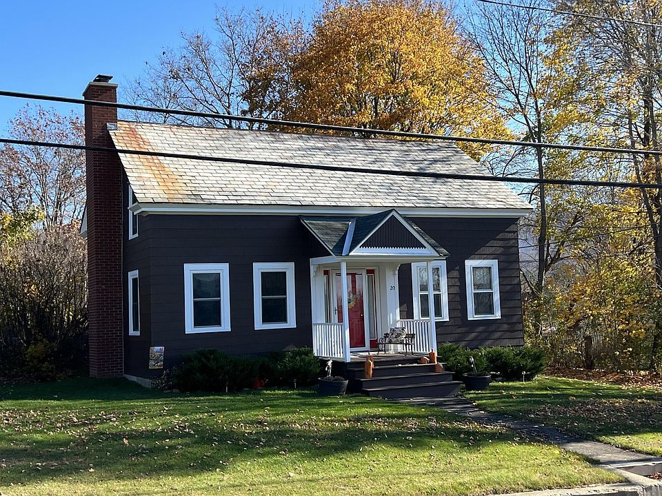Cute, Cute, Cute! this cozy well done three bedroom 2 bath house has space for everyone. This house is way bigger then it looks. Wonderful working kitchen with dining area at one end yet open to dining and living room for great entertaining. Newer pergo floating floors throughout. This house has a den or could be a 1st floor bedroom with full bath. Large master bedroom and two other nice size bedrooms upstairs. Basement offers a sweet workshop area with walkout and is clean as a whistle. This house has a dual heating system so you will never be without heat. A nice sitting deck off the back that overlooks a beautiful flat backyard and mountain views with a fenced area for pets . A paved driveway with plenty of parking and a rustic barn to store those outdoor items in.