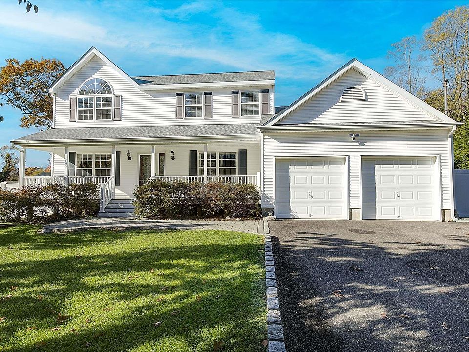 Light and bright 3BR, 3.5 BA with inviting front porch in Miller Place Schools. High ceilings with beautiful moldings and hardwood floors throughout. FDR, FLR, large EIK with separate dining area overlooking expansive deck, new shed and fenced in backyard with basketball/pickleball court. Den has built ins around the inviting fireplace. Large sunroom addition with radiant floor heating offers the perfect sun-filled spot for a home office or gym. Upstairs are 2 spacious BRs and full bath, a Primary BR and full bath and a walk-in attic storage area. Finally, the heated basement and new engineered wood floors is where you'll find the System 2000 high efficiency boiler and oil tank, summer kitchen and OSE. A great spot for extended guests or recreation room. This home has been meticulously maintained inside and out and is ready for a new owner., Additional information: Cooling:SEER Rating 12+,Separate Hotwater Heater:Y