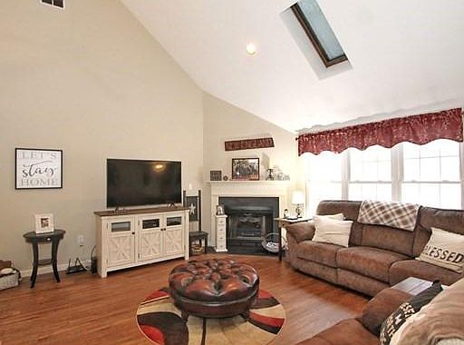 Location, Location, Location! Between the very convenient commuter location and the quiet, private setting of the unit placement you will not be disappointed! This sun-splashed condo is situated at the back of the complex and abuts woods which offers maximum privacy. Upon entering you are greeted with soaring ceilings and a neutral color palette throughout. The living room offers updated flooring, cathedral ceilings & fireplace. The first floor is completed with an open kitchen/dining room combination and half bath with first floor laundry. The second level boasts a primary bedroom with ample space, walk-in closet and access to the main bathroom which is accented with shiplap. The second bedroom overlooks the woods and has double closets. The bonus of this middle unit is the the walk-out finished basement which has young mini-split heat/ac units, full windows & slider plus a FULL bathroom! The space is versatile and can be used as a 3rd bedroom, office, family room etc,
