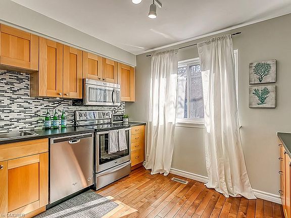 Location Location! Highly Sought After Craigie Orchards in Heart of Mineola Steps to Port Credit. Offers 2 Car Parking, Updated Kitchen & Baths, 3 Beds & 3 Baths. Main Floor Features Hardwood, Lrg Bright Kitchen w/ SS Appls, Open Concept Liv & Din Rm w/ Direct Access to Patio, Powder Rm. Upper Level Has Spacious Master Bed w/ Walk In Closet & Ensuite, 2 Additional Beds & Main 4 Pc Bath. Lower Level Finished Rec Rm Perfect for Home Office & Laundry. Close to Lake, Schools, GO, HWYs. A Must See!