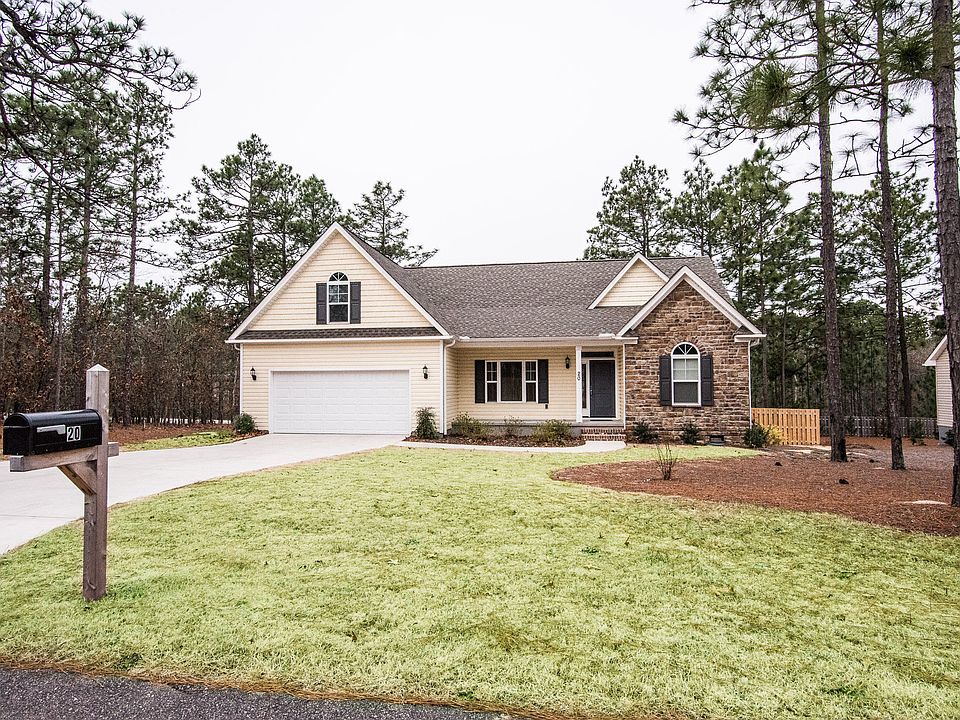 Located at the desirable Pinehurst No. 6 , this great home is waiting to be yours. From the spacious covered front porch you enter into a large foyer area with a formal dining room with chair railing and chandelier to your left. The Great Room features propane log fireplace (no tank) and gives access to large deck and fully fenced backyard. Kitchen boasts lots of cabinet space, with soft close doors and pull out drawer sliders for more storage, Granite counters and breakfast bar and nook area. All kitchen appliances stay! Master Bedroom is large in size and features WIC, his/hers sink, linen closet, huge tiled shower! 2 Other spacious bedrooms, a full guest bathroom and dedicated laundry room with this split floor plan. Huge finished bonus with a half bath upstairs. Make it yours TODAY!