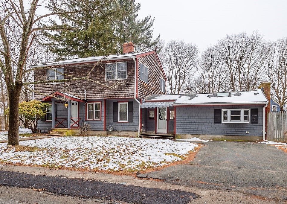 MULTIPLE OFFERS! See firm remarks. Come see this large (over 2000 SF!) home located at the end of a dead end street surrounded by woods on the Whitman line! Welcome into this shingled colonial home via a nice entry way between the family room and eat in kitchen with gleaming windows offering great natural light. The expansive sunken family room boasts a pellet stove, walk out to the large back yard and vaulted ceiling with beams, skylights and a fan. Step through the eat in kitchen to find another living room (this one with a gas fireplace!) full bathroom and large laundry room. The second level offers 3 nice size bedrooms with wall to wall carpeting, tall ceilings, and a full bathroom. The partial basement offers wonderful storage opportunities. Family room roof 4 years old and hot water heater less than 3. With .33 acres the exterior (partially fenced) provides plenty space for gatherings, privacy, a shed with electricity and tons of parking!