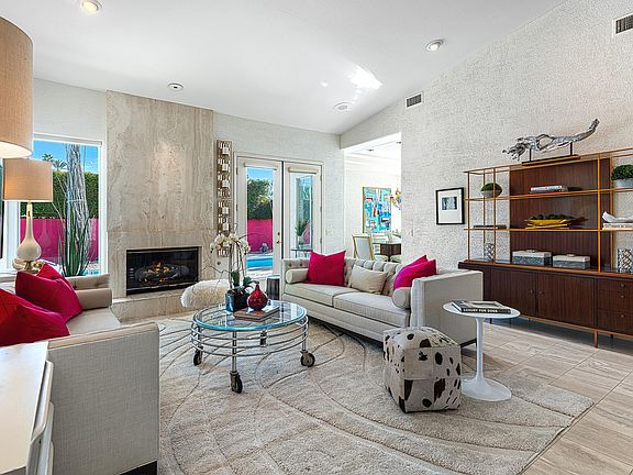 Stunning! Beautiful 3 BDRM, 4 BA private pool home w/ owned solar in prime Mission Pointe/Tamarisk area of Rancho Mirage. Light, bright, updated and move-in ready - the perfect combination of design and comfort! Great floor plan with generously sized rooms throughout, all bedrooms with en-suite baths and custom walk-in closets, and living areas as well as primary suite which open directly to the gorgeous resort style backyard oasis-- complete with renovated pool, spa, and magnificent specimen desert plants. The elegant island kitchen features new stainless appliances as well as space for a breakfast table, and opens directly via sliding doors to a lovely covered porch for true indoor/outdoor living. Adjacent to the kitchen a huge laundry room provides acres of storage and enough room to create an efficient home office. Architectural features include 10 ft or more ceilings in all major rooms, custom wall finishes, limestone floors, tons of large windows, and beautifully renovated fireplaces faced with slab and tumbled limestone. Wonderful coffee bar/ bar area is a great spot for gathering friends for a cocktail or enjoying morning coffee and casual meals and has tons of storage for china, stemware, etc. This home radiates style from the curb with magnificent new desert landscaping and dramatic illumination. Mission Point is fee (owned) land with low HOA, fitness room, tennis/pickleball, w/ gated access. Perfect location to access PS and RM amenities. Agent/Owner