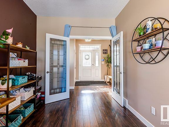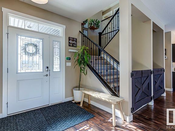 Stunning Original Owner 2460 sq ft Home, Custom Built by Executive Builder Landover Homes with Numerous and Extensive Upgrades. The Grand Entrance Welcomes you with a Large Office and Fully Open Concept main floor plan with 9-foot ceilings, Chefs Kitchen, Built-in Double Ovens, Butler Pantry, Large Island with Beverage Cooler and wall to wall windows overlooking your massive park setting back yard. Your back deck has a covered patio and a covered hot tub space overlooking your Massive Fully Landscaped Yard. The upper level is just as Impressive with a Media/Theater/Bonus room, two secondary large bedrooms, Fully Serviced Laundry Room and a Gorgeous Primary Suite with walk-in closet and a Very Luxurious 5-piece Ensuite. Your Garage is Oversized at 25' x 24' Fully Finished and Heated. This home is equipped with Central AC and located in Exclusive Southfort Meadows with Miles of Walking Trails and Ponds right outside your front door to Enjoy Long Walks and plenty of Wildlife.