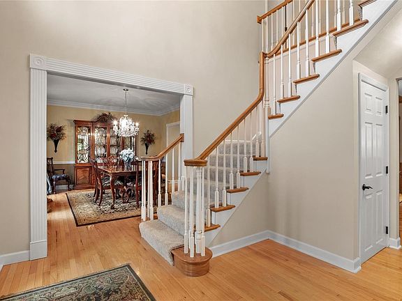Stunning grand updated gem w/ plush landscaping will impress w/over 3000 sq'. Newer roof (2021), freshly painted 2 sty grand entry staircase, wood floors & millwork which is flanked by a formal dining & living which seamlessly flows to family room w/wood-burning fireplace & impressive millwork. A pass thru bar leads to breakfast room & spacious kitchen that boasts double wall ovens, stainless appl, center island, exquisite maple cabinetry, updated laundry. The primary is a fully updated retreat, featuring coffered ceilings, custom walk-in closet & impressive double vanity sink, jacuzzi tub, & walk-in shower. 3 add'l beds & impressive updated bath with all new flooring complete the upper level. The lower level is perfect for guests, a flex room, to large updated bath, w/shower & double sinks. Rec room is well equipped bar, w/ gas fireplace, w/o access. Backyard boasts perennials, flagstone walk, & deck, a perfect space for outdoor gatherings and relaxation! Easy access to highways!