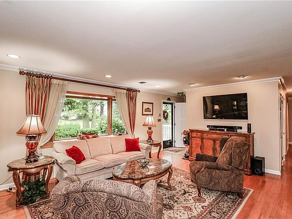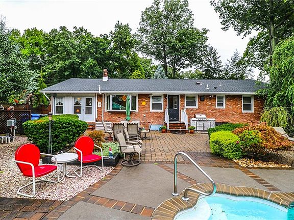 Enchantment for sale. Fall in love! Immaculate, custom, sprawling brick ranch in desirable location borders estate sect on quiet dead end. Stunning EIK with granite counters, h/w floors, in ground pool w/waterfall in gorgeous, landscaped magical yard. Charm & elegance thru out this home. Must See High quality with open floor plan, lots of storage and closets, whole house generator, lights on fencing around pool, paver patio, 3 refrigerators included, kitchen, basement and shed.