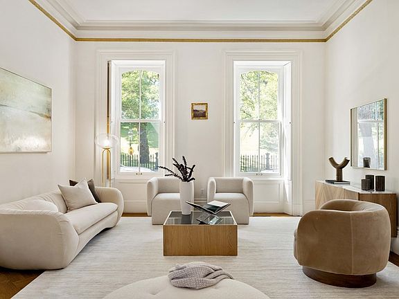 Magnificent home with premier City location on Monument Square. Renovated for today's modern living. The first floor offers an open floor plan ideal for entertaining including a living room, a dining room and a large kitchen with Calacatta quartz countertops. Amazing outdoor deck and courtyard off of the kitchen. Original 1800's architectural details throughout. Second floor includes primary bedroom suite, spa bathroom, steam shower and a family room with custom built-ins and an office. The third floor has two great-sized bedrooms and two bathrooms. The top floor has two bedrooms and a family room with staircase to a large roof deck with 360-degree views of the City. Owners' unit is 4700 square feet plus garden apartment for au pair or income and storage. Two parking spaces! Convenient neighborhood, this beautiful home offers City living at its finest.