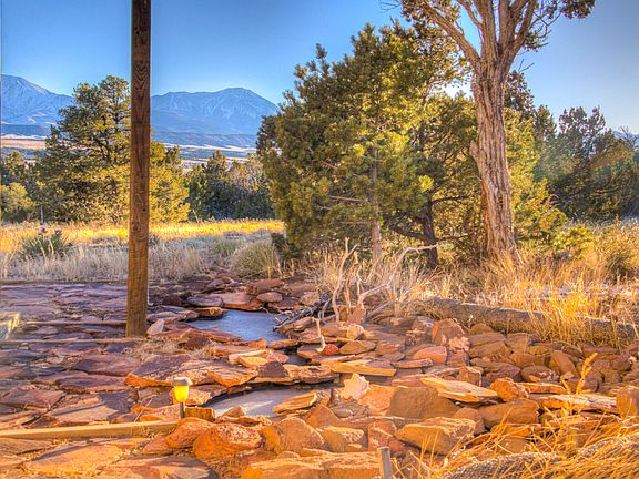 Glorious views of the Spanish Peaks (Wahatoya) Mountains from every room on this 4.95 Acre parcel. Quality custom built home has a very spacious floor plan. Bedrooms, dining room, and living room all open to extensive decking. Pristine & beautiful kitchen includes stainless appliances, double convection oven, counter microwave and a large island with tremendous cabinet space. Water softener, RO water system, dumb waiter and a large unfinished basement. Paved driveway to a heated oversized two car garage with plenty of shelving and storage. New Luxury vinyl floors throughout entire home make this home beautiful and cozy. Wood blinds and nice drapery, a large Wood fireplace in living room for wonderful ambiance. Just minutes from La Veta or Walsenburg. Priced to sell, so do not miss out.