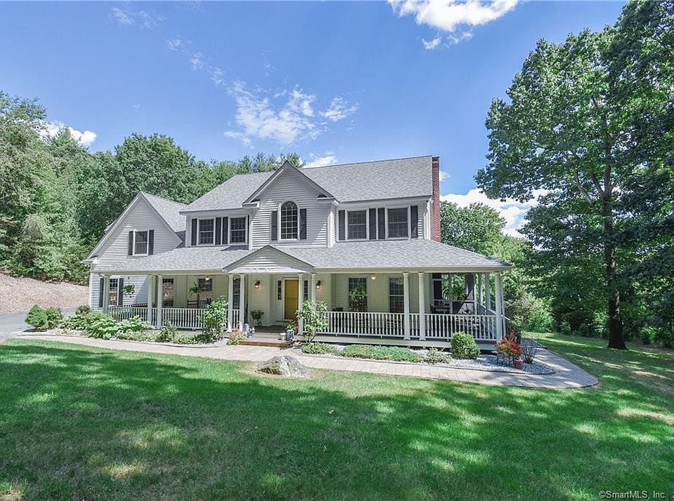 Lovely 3370 sq ft. 4 bedroom, 2.5 bath home built in 2000. Beautiful, private West Granby setting. Enjoy the rambling 6.7 acres from the charming wrap around front porch, screened porch or large composite deck which overlooks the spacious back yard. Many updates on the interior, which features: An elegant and functional owner’s suite including an airy and bright bath with jetted tub for two as well as an additional room for office, sitting or baby needs. 9' ceilings on first floor, 7.5' on second, crown molding, granite countertops, tile in baths and laundry, wood floors both up and down with carpet in bonus room and one bedroom; 2nd floor laundry. The walk up attic has floor joists enabling expansion on 3rd floor. The main floor features a gorgeous kitchen with bay window and breakfast bar that opens to the family room with fireplace: Tons of storage in the walk in pantry off the mud room. The front of the house features a formal foyer, dining room and living room. The accessible walk out basement is equipped with a transfer switch and could be finished for more living space. Other features: 3 zone oil heat, power humidifier, electric air filter, central air, central vac, stainless steel appliances, built in stereo system, front and back staircases and 3 car garage. 24 hour notice for showings.