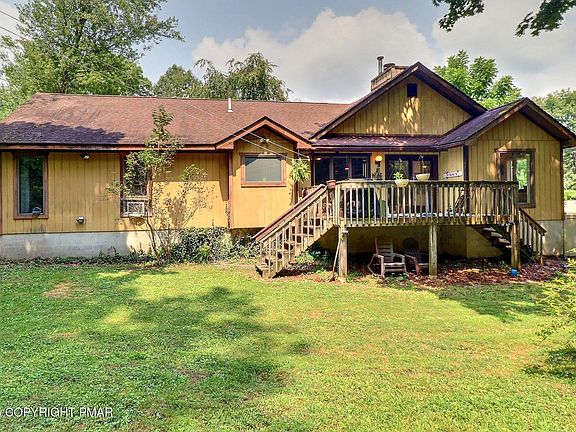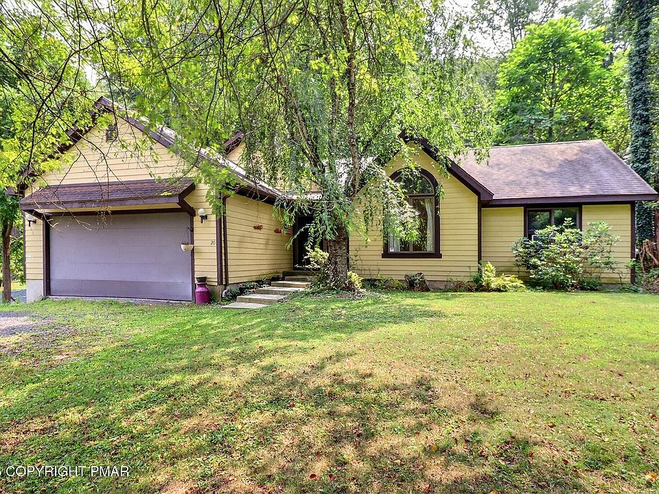 Discover the perfect blend of charm, convenience, and lifestyle in one of 'The Burgs' most sought-after neighborhoods, South Stroudsburg where homes rarely stay on the market for long. Imagine starting your Saturday morning with a leisurely stroll to the bustling farmers market, then meeting friends for brunch at one of the many local restaurants, wineries, or pubs just a short walk away. This ultra-central location puts you minutes from major medical centers, East Stroudsburg University, the scenic Delaware Water Gap National Recreation Area, and the Delaware River, offering endless opportunities for dining, culture, and outdoor adventure. Nestled along an idyllic, tree-lined street, this 3-bedroom, 2-bath architectural delight offers the ease of one-floor living with style and character at every turn. Step inside to be greeted by warm hardwood floors and a sun-filled living room with vaulted ceilings, anchored by a striking wood-burning fireplace that becomes the heart of the home on crisp Pocono evenings. Just off the main living space, the versatile third bedroom with its tall ceiling makes an ideal home office, library, or creative studio. The kitchen features newer flooring and a cozy breakfast nook overlooking the fenced backyard, where mature trees create a serene retreat and a deck invites you to relax and entertain. The bedroom wing offers a modern full bath with updated flooring, a comfortable second bedroom with easy-care vinyl plank flooring, and a spacious primary suite with a generous closet and a beautifully remodeled private bath complete with a whirlpool tub and separate shower, your own personal spa escape. Downstairs, a large, open basement offers endless potential to finish for additional living or recreation space, while the attached two-car garage provides convenience and storage. Offered as-is and ready for your personal touches, this is your opportunity to own a home in one of Stroudsburg's hottest locations, a place where convenience meets community, and every day feels like a little getaway. Schedule your private tour today and start living the lifestyle of which you've been dreaming.