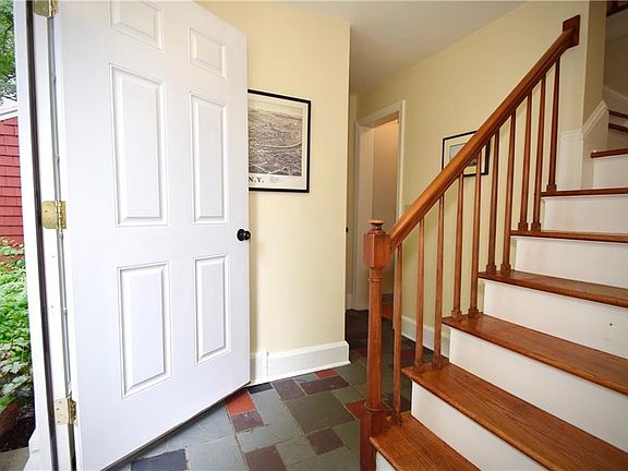 Lovingly restored & meticulously maintained 1870 colonial. Modern amenities, yet retains all of the character & charm of a historic home. This 3 bd, 1.5 ba sits on almost 1/2 an acre of beautifully landscaped property steps outside the village. Front facing LR features built ins & stunning formal DR. You will love the eik-updated 2013 w/new counters, cabinet doors, recessed lighting &pantry. Huge family rm off the back of house-brick FP w/ hearth, beamed ceiling w/ new skylights, built ins & a gorgeous view of the backyard. On the 2nd floor, find 3 generous bdrms, fresh & neutral- featuring gorgeous wide plank wood floors & updated full ba. Add'l features:1st floor laundry rm, powder rm, replacement windows, new electric panel, fixtures & lighting. Central AC, stone patio. Don't miss this great property!