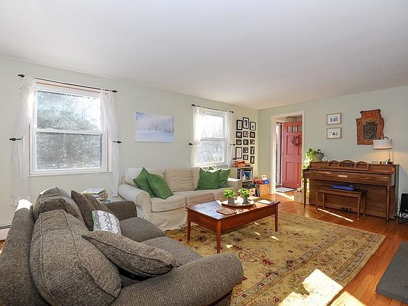 Spacious South Amherst Cape located in a fantastic neighborhood on a desirable cul-de-sac. 5 bedrooms with wood & tile flooring throughout and two renovated baths, it is larger that it looks! Light -filled living room with fireplace/wood stove and bluestone hearth. The ample kitchen features a breakfast bar and plenty of counter space with an open flow to the dining room. There is a 3-season porch overlooking the lush, private yard with blackberry and raspberry bushes. Partially finished basement with workshop and an attached garage, mud room/office make the space complete. Two of the bedrooms are on the first floor along with bath & laundry. Walk to PVTA bus, Crocker Farms & conservation area. 2 zone Buderus boiler, newer water heater & replacement windows help keep everyone cozy. This is a Wonderful Home - Where Memories are Made. COME SEE!