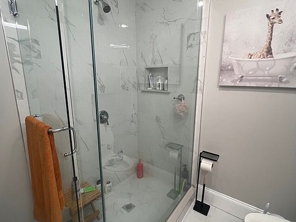 This recently remodeled 1 bedroom 1 bathroom has a front facing living room with plenty of light, a private rear entrance off the deck and parking area, laundry in unit, central air along with a gorgeous glass shower and tiled bathroom! The kitchen is fully applianced and offers white shaker cabinets & quartz counters & all stainless appliances! Parking available. Professionally managed. Great I-93 and Redline access. Close to Carson and Malibu Beach. South Bay Shopping Center, with grocery store, Home Depot, and many shopping and dining options.