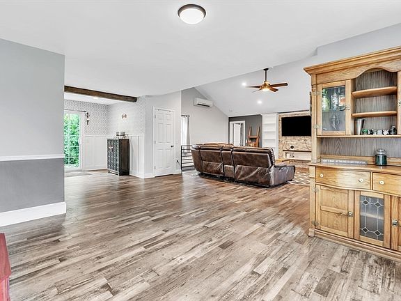 Are you ready to fall in love? Welcome to this beautifully maintained cape with a HUGE Open Floor Plan addition that sits on a beautiful, off the road lot, fully fenced in, with garden areas, a patio, and a detached 2 car garage. Enter right into the sunny south facing sitting room and then enjoy the open layout dining with access to the patio and BREATHTAKING living room and kitchen. You will never want to leave. Guest bed and full bath to the left of the dining. Off to the right of the living room is the SPACIOUS primary bedroom with walk in closet and stunning bathroom with a tiled two headed shower for a spa like experience. Upstairs are two more bedrooms, great views and BRAND NEW hardwood floors. So much space to enjoy and entertain! Head downstairs for the game room, with bar, full laundry room with sink, 1/2 bath, and still, a huge amount of storage and workspace in the unfinished space. New boiler, lots of updates, mini splits, gas cooking...This home is a gem...Make it YOURS!