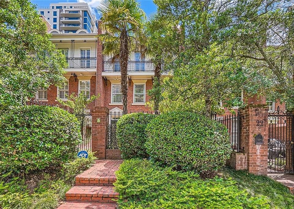 Elegant three-story townhome with lovely courtyard in Buckhead's Peachtree Heights West neighborhood. Main floor office/den with built-ins, hardwood floors, laundry room, powder room, closet and garage. Second floor offers a fabulous kitchen with large island open to the dining area. Living room with fireplace, built-in cabinetry, and transoms with stained glass windows. Third floor includes the primary and guest suites, each with luxury baths. Numerous architectural details throughout. Elevator. Agent/owner