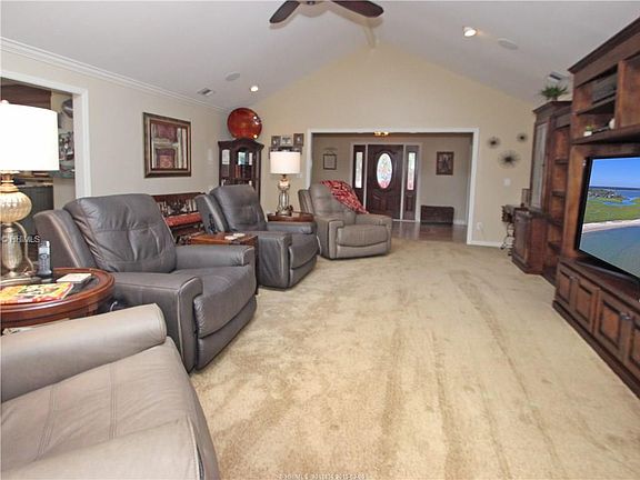 Beautifully renovated home - you will be amazed at the spacious entertainment kitchen with an over-sized island in the middle, gorgeous "leather" granite counters, granite sink, custom cabinets, newer slate appliances, and walk-in pantry. Dining area is adjacent kitchen. Formal living room with vaulted ceiling. A large den/flex room is off the kitchen. There is a separate arts and crafts room plus additional utility room. Large back deck is partially covered by a jasmine covered trellis for shaded comfort. Private and beautifully landscaped backyard. Cat 5 wiring in every room. Located on the 2nd tee box - 2nd hole of Oyster Reef Golf Course.