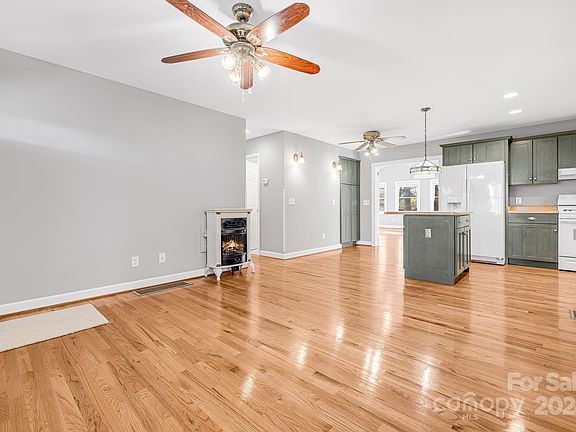 Super clean and nicely updated single fam home, with so many features, including, main level with ceiling fans, hardwood floors, freshly painted, gas logs, vaulted ceilings, lots of windows, skylights, updated kitchen with island and laundry hook up with tile floor, access to both rear decks. Primary BR with new carpet, dual sinks, tile floor, and shower/tub combo, newly carpeted guest BR, bath with tile floor and shower. Newer central HVAC with heat and AC, also newer mini splits. Huge GRM w/skylights. Lower level (basement) accessed from outside only has large bd/bonus room, freshly painted, with laminate wood floors, ceiling fan, two entrances, sliding door, mini split, full bath with shower only, separate driveway. Hot water on demand. Deck is adjoined by partly finished studio, has drywall and electric. Detached two car garage. Interior and ceilings freshly painted. Well pump is new, also new toilets and shower heads upstairs. Property wooded w/great access to Weaverville.