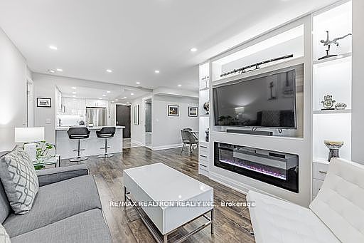 Fully Renovated Unit. Located next to Shops, Mall, Transportation and much more. This very rare open concept unit is the only unit in the building with a large terrace! Grate For Entertainers, Just over 1100 sqft of completely renovated from top to bottom. New kitchen, new bathrooms, new floors. Smooth ceilings with pot lights. New appliances, closet organizers, custom media unit with a built in fireplace, and California shutters throughout. 250sqf terrace w/ stunning sunset views.