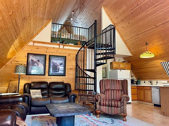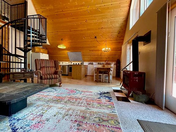CUTE A-Frame Style Cabin awaits new ownership - Don't miss out - sit on the deck and soak in the peaceful calming of the pines! This Plumas Pines cabin is adorable, two French doors welcome you to a spacious great room with an EZ function propane gas stove for heat, a full kitchen and dining area, full bath and laundry room are down the hall. Up the spiral stair case is a large loft with two queen beds, a pedestal sink and toilet (1/2) bath. Outside is a spacious carport, fenced yard, comfortable deck space that wraps on two sides to enjoy your time under the pines. Owners will enjoy access to hiking trails, Lakes Basin and Quaint Downtown Graeagle this home is ready to move in or generate rental income.