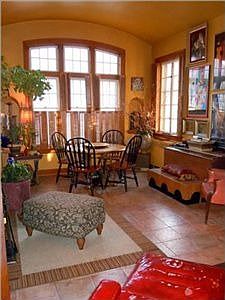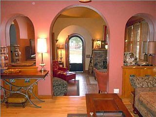 Looking for "House Beautiful?" Then look no further than this lovely and fabulously decorated 2 to 3 bedroom, 2 bath home with 2 gas log fireplaces for additional warmth, lovely hardwood floors, a kitchen with a built in breakfast nook, tons of storage, walk in closets, lower level rec. room, office and/or bedroom. Wait until you see the fancy shiny tiled bathroom! Arched doorways and knooks in the tiled living room feature a rolled barrel ceiling line. The front of the home showcases stone frescos and pebbled concrete work There are daylight windows in the lower level, a fenced back yard with multi colored real slate tile walkway, a huge double deck with built in seating, and a oversized double garage with a storage room behind for your patio furniture.