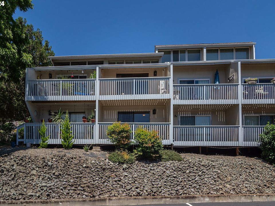 You won't want to miss this condo - great for the first time homebuyer, investment property, or a vacation residence! This tri-level home has vaulted ceilings and a wall of windows which offer great views of the mountains, city and valley. Enjoy outdoor time from the balcony off the living room or the covered deck off the primary bedroom. In addition to the two bedrooms, there is a large loft upstairs with a closet, which has been used as a 3rd bedroom. Refrigerator, washer and dryer are included. Updates include paint, new faucets/sinks in the bathrooms & newer glass doors in the shower. Plenty of parking in your garage or your designated parking spot. The Seller is offering $5,000 flooring allowance at closing with an acceptable offer. The HOA fee covers ALL exterior maintenance, including roof, paint, decking, landscaping and the swimming POOL. Convenient location, close to shopping and medical. Only 90 minutes to the Pacific Ocean and only 90 minutes to the snow, Roseburg is a great town, located in the "banana belt" of Southwestern Oregon. You're going to love it here!